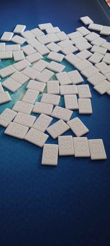 Mon avis sur le matériel : Le matériel de Double Seven est une réussite. La boîte est compartimentée, ce qui facilite le rangement. Les tuiles en résines sont agréables en main avec un bon fini mat qui résiste bien après plusieurs parties. Les tuiles 7 sont bien épaissent.